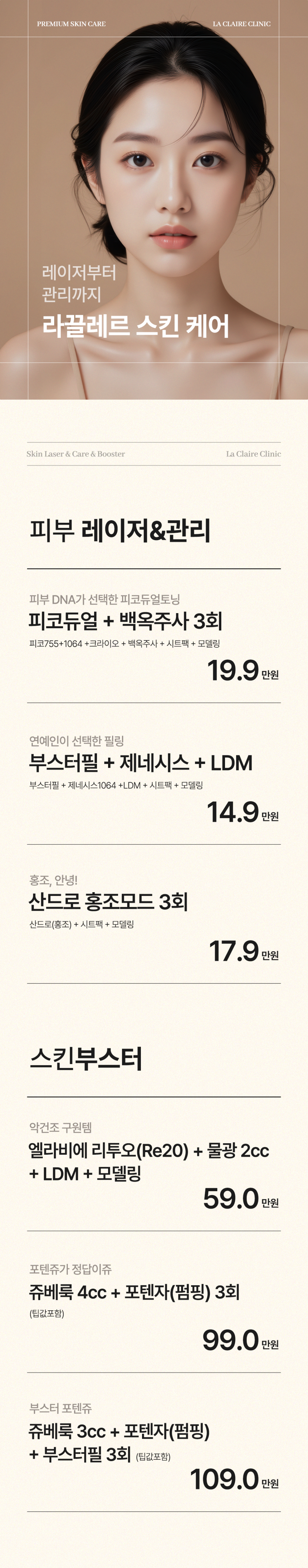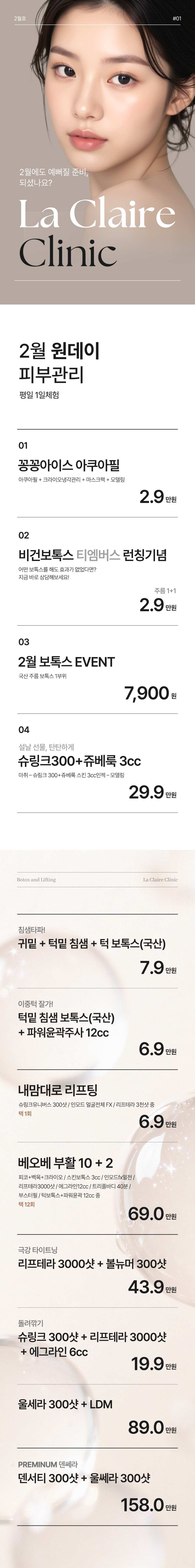 병원 분류 2월 관리 이벤트 작성자 정보 최고관리자 작성 작성일 2026.02.06 17:37 컨텐츠 정보 19 조회 목록 본문 2월 관리 이벤트 태그 #피부과, #시술, #보톡스, #리프팅, #레이저, #필러, #피부관리, #잡지컨셉, #매거진, #원데이, #심플한, #안정적, #신뢰적인, #깔끔한 관련자료 이전 오슬로 소파 상세페이지 작성일 2026.02.10 18:10 다음 쉐인 식탁 상세페이지 작성일 2026.02.02 19:41 댓글 0 등록된 댓글이 없습니다. 로그인한 회원만 댓글 등록이 가능합니다. 목록
