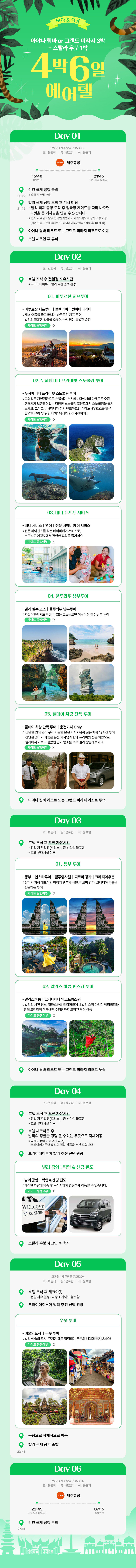 마케팅 분류 4박6일 에어텔 일정 상세페이지 작성자 정보 최고관리자 작성 작성일 2026.03.04 13:21 컨텐츠 정보 13 조회 목록 본문 내용 태그 #깔끔한, #여행, #호텔, #발리, #바다, #정글, #숙박, #숙소, #일정, #항공, #관광, #투어 관련자료 이전 나비 테이블 상세페이지 작성일 2026.03.05 13:59 다음 리쥬엘의원 3월 상세페이지 작성일 2026.02.27 19:15 댓글 0 등록된 댓글이 없습니다. 로그인한 회원만 댓글 등록이 가능합니다. 목록