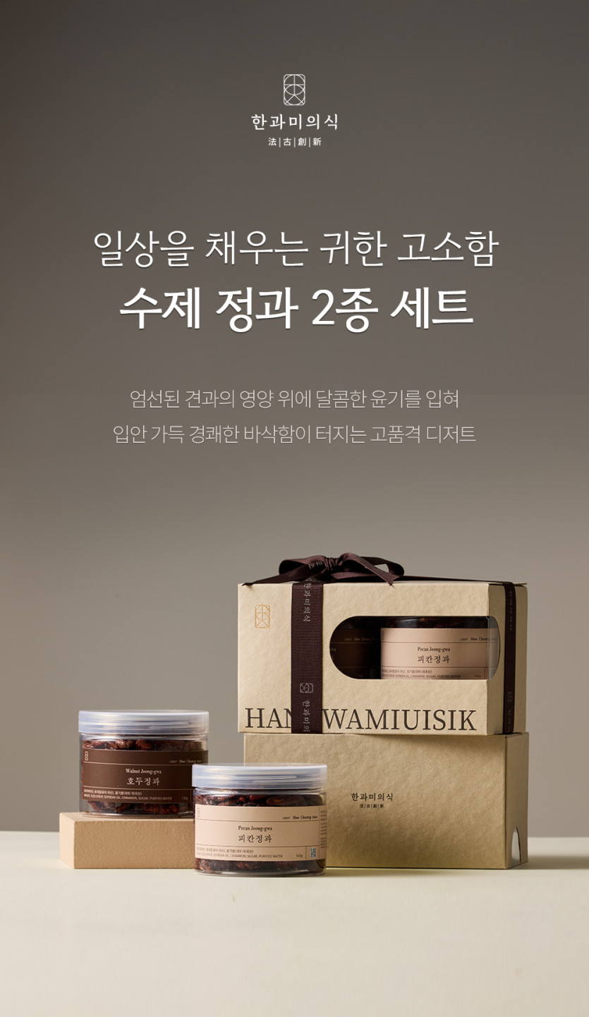 식품 분류 호두정과 & 피칸정과 상세페이지 작성자 정보 최고관리자 작성 작성일 2026.03.05 18:14 컨텐츠 정보 14 조회 목록 본문 호두정과 & 피칸정과 상세페이지 태그 #한과, #정과, #피칸, #호두, #간식, #고급, #고급선물, #명절, #명절선물, #약과, #선물, #패키지, #세트, #고급스러운, #서정적인, #심플한, #안정적, #신뢰적인, #클래식한, #한국적/동양적인, #깔끔한 관련자료 이전 3월 이벤트 상세페이지 작성일 2026.03.05 18:57 다음 3월 관리 프로모션 작성일 2026.03.05 18:10 댓글 0 등록된 댓글이 없습니다. 로그인한 회원만 댓글 등록이 가능합니다. 목록