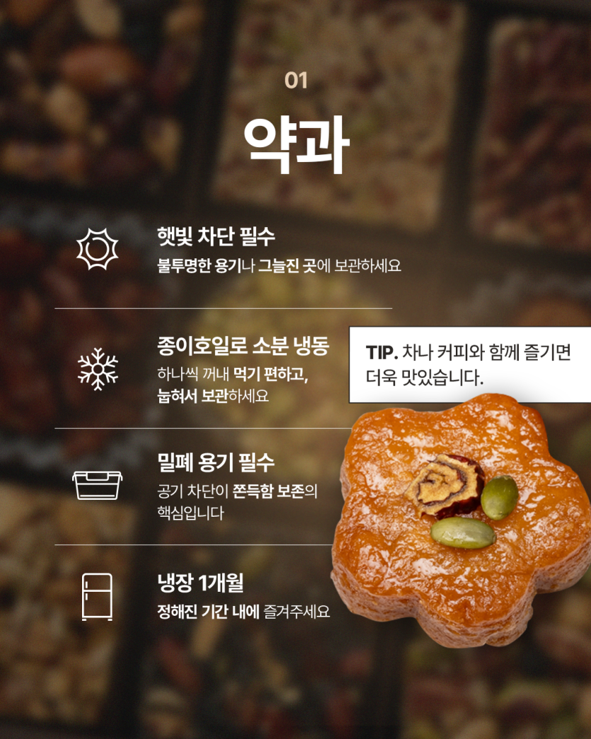 식품 분류 한과 보관법 카드뉴스 작성자 정보 최고관리자 작성 작성일 2026.02.02 13:09 컨텐츠 정보 23 조회 목록 본문 한과 보관법 카드뉴스 태그 #한과, #인스타그램, #매거진, #푸드, #강정, #약과, #보관법, #복고적인, #안정적, #신뢰적인, #한국적/동양적인, #자연적인/환경적인, #깔끔한 관련자료 이전 제이델링 카드뉴스 3종 작성일 2026.02.02 13:46 다음 인스타 피드 광고 작성일 2026.02.02 13:06 댓글 0 등록된 댓글이 없습니다. 로그인한 회원만 댓글 등록이 가능합니다. 목록
