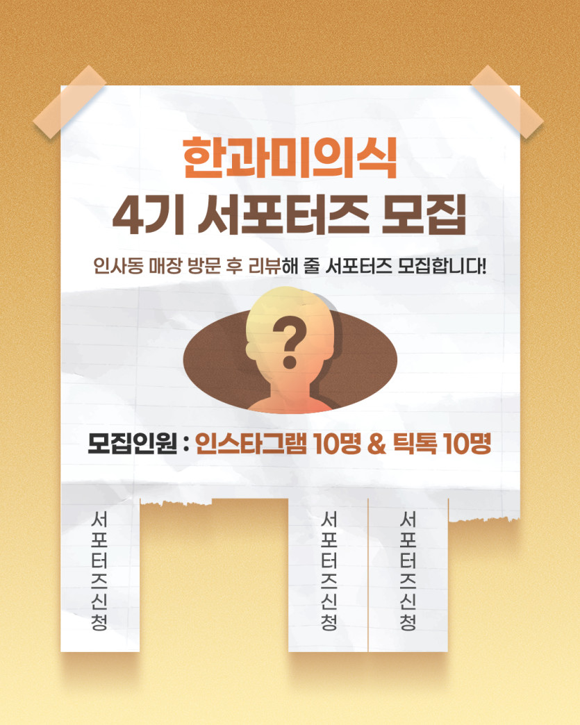 식품 분류 인스타그램 서포터즈 모집 안내 작성자 정보 최고관리자 작성 작성일 2026.03.06 18:07 컨텐츠 정보 23 조회 목록 본문 인스타그램 서포터즈 모집 안내 태그 #약과, #정과, #해태, #서포터즈, #전단지, #인스타, #과자, #간식, #신상품, #디저트, #인스타피드, #귀여운, #심플한, #재미있는, #한국적/동양적인 관련자료 이전 미라콜 인스타 피드 작성일 2026.03.06 18:33 다음 인스타피드 작성일 2026.03.04 18:15 댓글 0 등록된 댓글이 없습니다. 로그인한 회원만 댓글 등록이 가능합니다. 목록