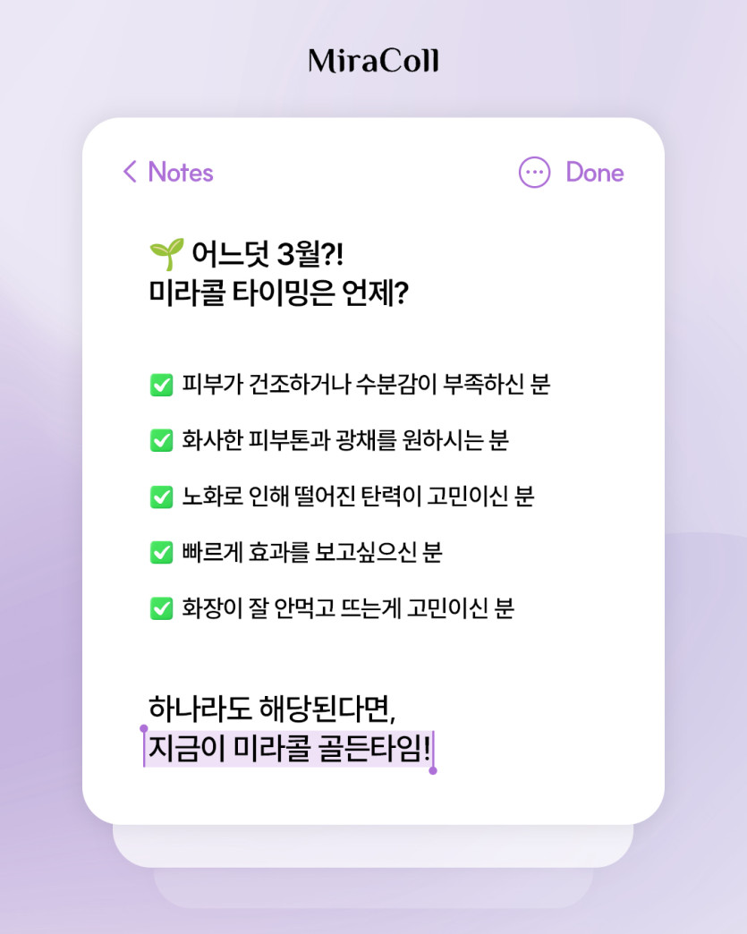 병원 분류 미라콜 인스타 피드 작성자 정보 최고관리자 작성 작성일 2026.03.06 18:33 컨텐츠 정보 14 조회 목록 본문 내용 태그 #의원, #보라, #선물, #미라콜, #시술, #메모지, #피부미용, #미용시술, #콜라겐 관련자료 이전 아말리안 인스타 피드 작성일 2026.03.06 18:35 다음 인스타그램 서포터즈 모집 안내 작성일 2026.03.06 18:07 댓글 0 등록된 댓글이 없습니다. 로그인한 회원만 댓글 등록이 가능합니다. 목록