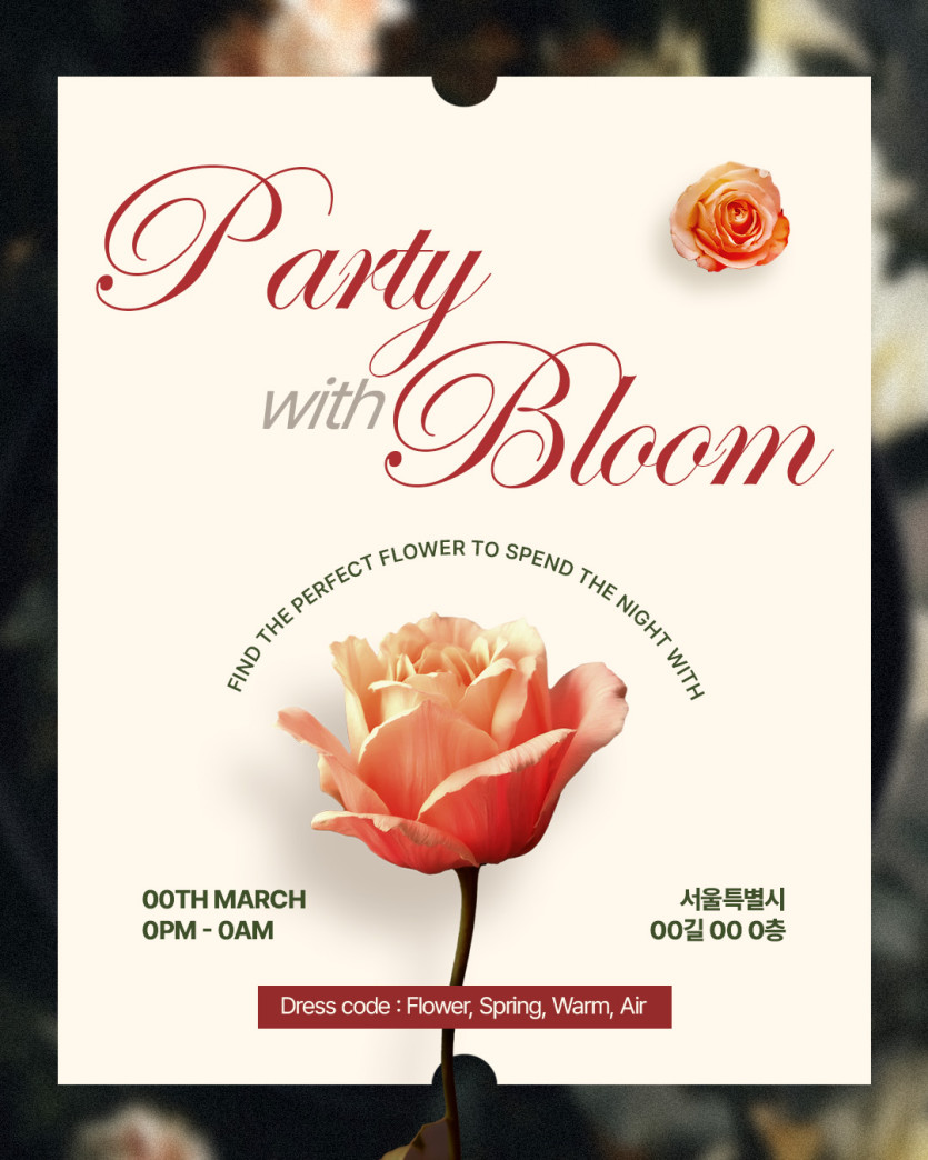 행사 분류 초대장 작성자 정보 최고관리자 작성 작성일 2026.03.27 17:54 컨텐츠 정보 16 조회 목록 본문 내용 태그 #고급스러운, #신비적인, #안정적, #여성적인, #초대장, #행사, #꽃, #세리프체, #장식체, #파티 관련자료 이전 봄 산책시 주의사항 정보성 피드 작성일 2026.03.27 18:37 다음 미래전략캠퍼스 홍보 캐러셀 카드뉴스 작성일 2026.03.27 16:16 댓글 0 등록된 댓글이 없습니다. 로그인한 회원만 댓글 등록이 가능합니다. 목록