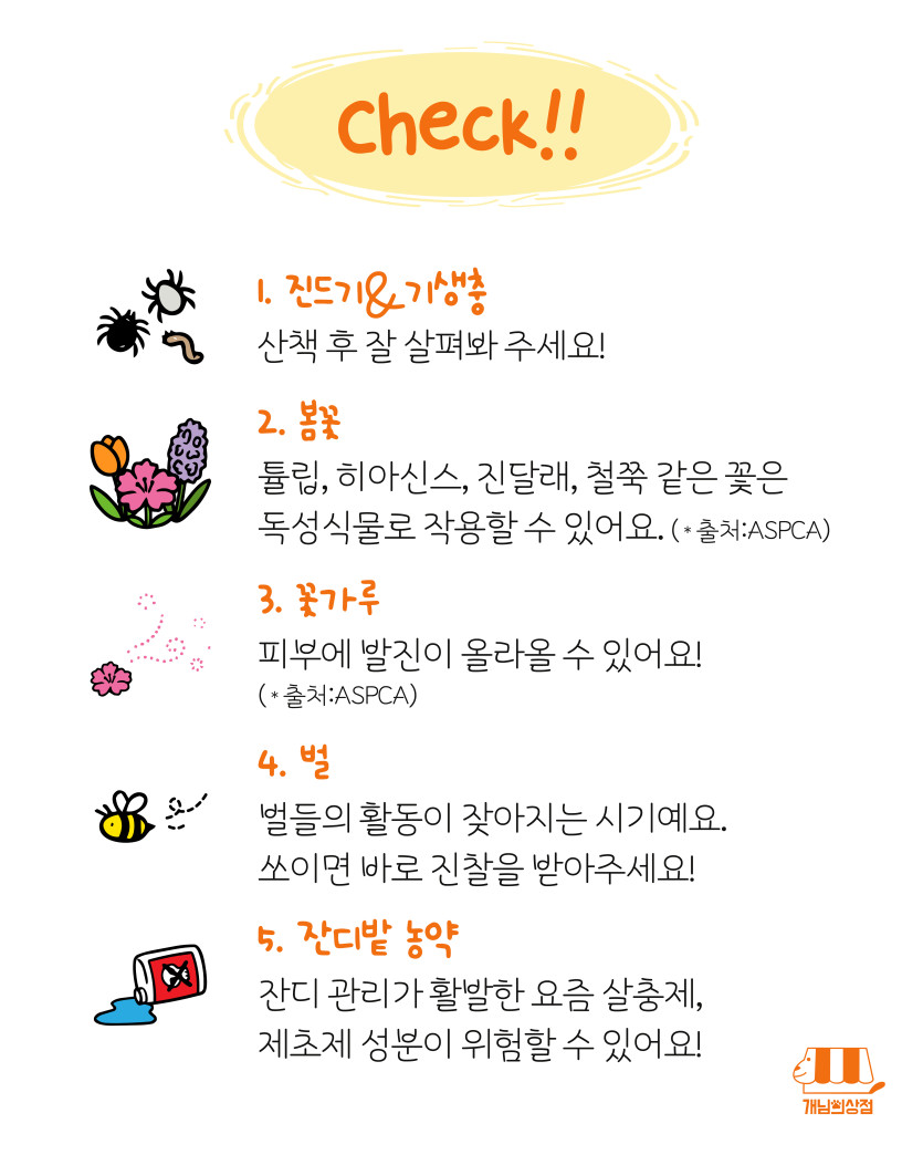 애견용품 분류 봄 산책시 주의사항 정보성 피드 작성자 정보 최고관리자 작성 작성일 2026.03.27 18:37 컨텐츠 정보 12 조회 목록 본문 내용 태그 #귀여운, #재미있는, #애견, #강아지, #반려견, #산책, #봄, #주의사항, #정보, #안내, #진드기, #꽃, #케어 관련자료 이전 원팩 올인원 헬스팩 인스타그램 피드 작성일 2026.04.02 11:52 다음 초대장 작성일 2026.03.27 17:54 댓글 0 등록된 댓글이 없습니다. 로그인한 회원만 댓글 등록이 가능합니다. 목록