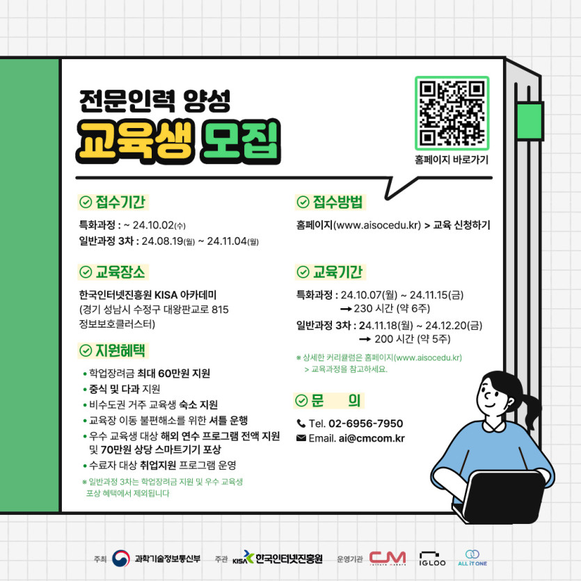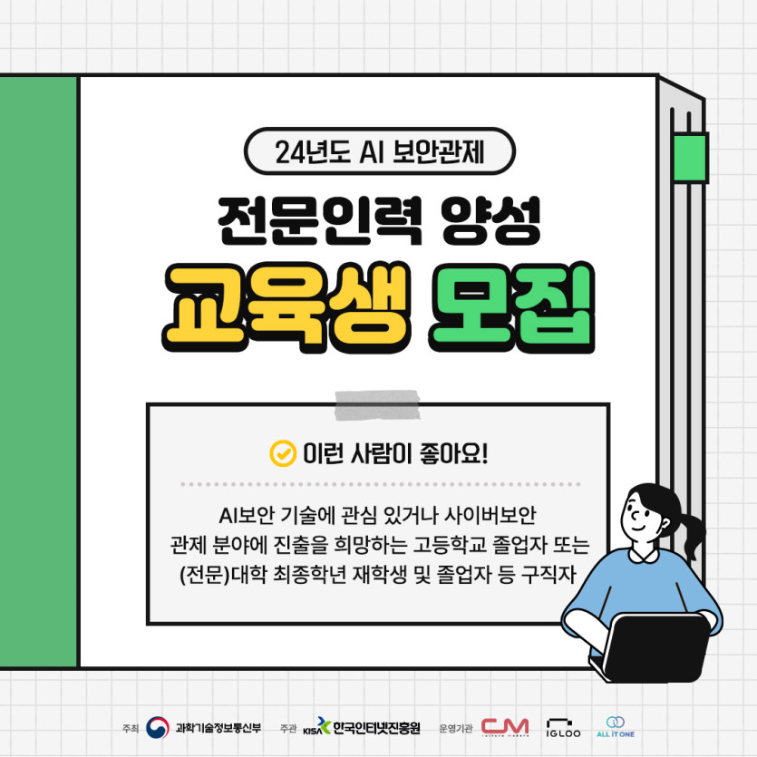 교육 분류 전문인력 양성 교육생 모집 카드뉴스 작성자 정보 최고관리자 작성 작성일 2024.12.13 16:53 컨텐츠 정보 17 조회 목록 본문 카드뉴스 태그 #깔끔한, #심플한 관련자료 이전 AI 보안관제 교육생 모집 카드뉴스 작성일 2024.12.13 16:55 다음 케이펫페어 카드뉴스 작성일 2024.12.13 16:50 댓글 0 등록된 댓글이 없습니다. 로그인한 회원만 댓글 등록이 가능합니다. 목록