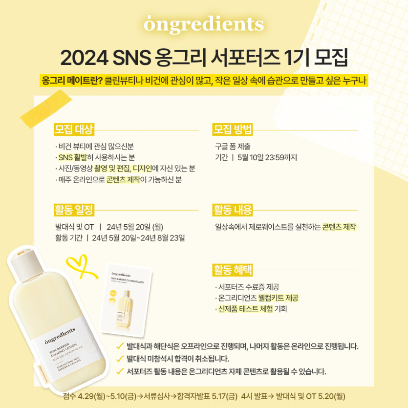 뷰티 분류 온그리디언츠 서포터즈 모집 카드뉴스 작성자 정보 최고관리자 작성 작성일 2024.12.13 19:19 컨텐츠 정보 19 조회 목록 본문 카드뉴스 태그 #깔끔한, #심플한 관련자료 이전 개님의 껌 대용량 출시 SNS콘텐츠 작성일 2024.12.13 19:20 다음 가을이벤트 SNS콘텐츠 작성일 2024.12.13 19:17 댓글 0 등록된 댓글이 없습니다. 로그인한 회원만 댓글 등록이 가능합니다. 목록