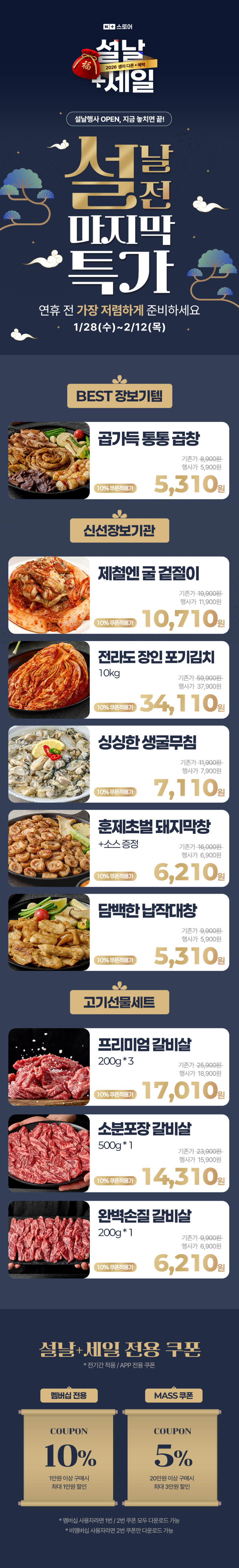 식품 분류 설날+세일배너 작성자 정보 최고관리자 작성 작성일 2026.01.28 17:49 컨텐츠 정보 28 조회 목록 본문 설날세일배너 태그 #고급스러운, #한국적/동양적인, #설날, #세일, #할인, #쿠폰, #특가, #닭발, #갈비, #김치, #막창, #대창, #연휴 관련자료 이전 에이블리 프로모션 배너 작성일 2026.01.28 18:18 다음 설날 프로모션 배너 작성일 2026.01.27 10:34 댓글 0 등록된 댓글이 없습니다. 로그인한 회원만 댓글 등록이 가능합니다. 목록