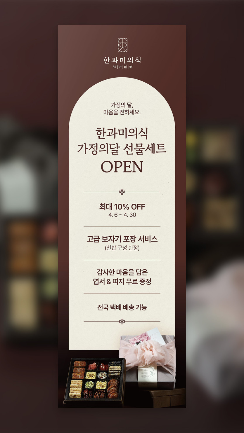 식품 분류 가정의달 선물세트 안내 배너 2종 작성자 정보 최고관리자 작성 작성일 2026.03.27 18:15 컨텐츠 정보 30 조회 목록 본문 가정의달 선물세트 안내 배너 2종 태그 #약과, #한과, #디저트, #x배너, #답례품, #선물, #현수막, #간식, #사은품, #할인, #택배, #가정의달, #4월, #5월, #고급스러운, #신뢰적인, #클래식한, #한국적/동양적인, #모던한, #깔끔한 관련자료 이전 가정의달 선물세트 안내 A4 POP 작성일 2026.03.27 18:25 다음 메뉴소개서 작성일 2026.03.27 18:00 댓글 0 등록된 댓글이 없습니다. 로그인한 회원만 댓글 등록이 가능합니다. 목록