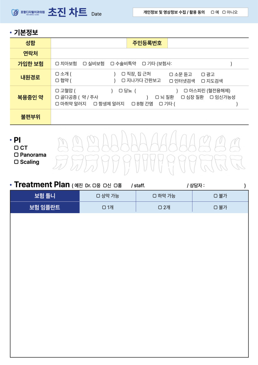 병원 분류 포항디지털치과 초진차트 작성자 정보 웹와이즈 작성 작성일 2026.04.01 18:42 컨텐츠 정보 15 조회 목록 본문 포항디지털치과 초진차트 태그 #심플한, #깔끔한, #병원, #차트, #초진차트, #치과, #치아, #진료, #서류, #포스터 관련자료 이전 리버티오션 A3 포스터 작성일 2026.04.07 10:23 다음 해군 호국음악회 키비주얼 작성일 2026.03.31 10:02 댓글 0 등록된 댓글이 없습니다. 로그인한 회원만 댓글 등록이 가능합니다. 목록