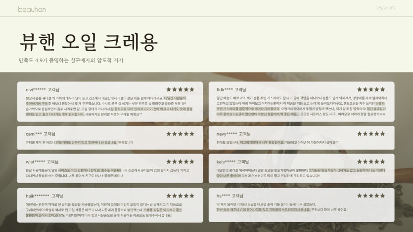 뷰티 분류 뷰핸 상품 소개서 PPT 작성자 정보 최고관리자 작성 작성일 2026.02.02 11:04 컨텐츠 정보 17 조회 목록 본문 뷰핸 상품 소개서 태그 #고급스러운, #모던한, #깔끔한, #화장품, #감성 관련자료 이전 라끌레르의원 메뉴북 작성일 2026.02.02 12:57 다음 개님의상점 카탈로그 리뉴얼 작성일 2026.01.30 17:27 댓글 0 등록된 댓글이 없습니다. 로그인한 회원만 댓글 등록이 가능합니다. 목록