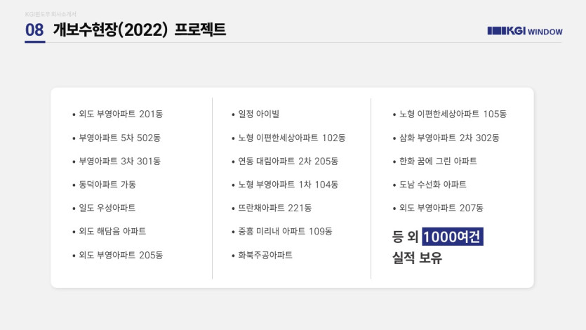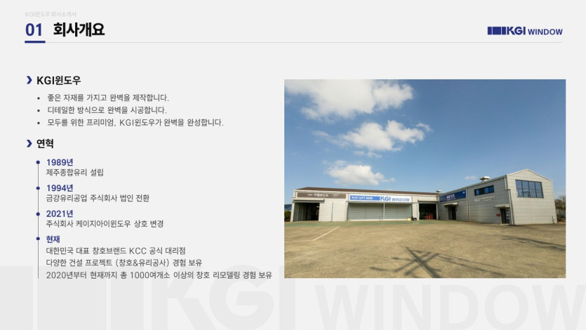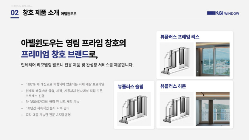 제품 분류 케이지아이윈도우 회사소개서 PPT 작성자 정보 최고관리자 작성 작성일 2026.02.09 17:58 컨텐츠 정보 25 조회 목록 본문 케이지아이윈도우 회사소개서 PPT 태그 #심플한, #안정적, #신뢰적인, #모던한, #깔끔한, #창문, #인테리어, #리모델링 관련자료 이전 전동쟁기 사용설명서 작성일 2026.02.11 16:46 다음 킹콩애드 회사소개서 PPT 작성일 2026.02.06 18:01 댓글 0 등록된 댓글이 없습니다. 로그인한 회원만 댓글 등록이 가능합니다. 목록