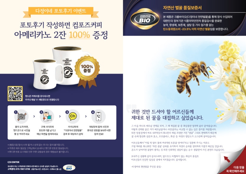식품 분류 야생화꿀 반접지 팜플렛 표지 작성자 정보 웹와이즈 작성 작성일 2026.04.14 19:11 컨텐츠 정보 7 조회 목록 본문 내용 태그 #신뢰적인, #인간적인, #자연적인/환경적인, #리플렛, #자연, #꽃, #벌꿀, #꿀벌, #벌, #증정, #이벤트, #품질보증, #품질보증서, #곤충, #허니, #honey, #bee, #남색, #네이비, #2단리플렛, #2단팜플렛 관련자료 이전 아쿠아데라 제품소개서 작성일 2026.04.14 19:23 다음 오라셀 앰플 라벨 작성일 2026.04.10 21:02 댓글 0 등록된 댓글이 없습니다. 로그인한 회원만 댓글 등록이 가능합니다. 목록