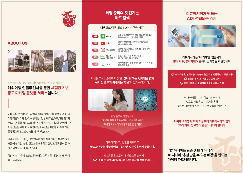 마케팅 분류 리뷰아시아 리플렛 작성자 정보 최고관리자 작성 작성일 2025.07.29 17:40 컨텐츠 정보 17 조회 목록 본문 리플렛 태그 #깔끔한 관련자료 이전 헤어픽서 리플렛 작성일 2025.07.31 17:57 다음 워킹맘 창업 강의안 PPT 작성일 2025.07.29 17:13 댓글 0 등록된 댓글이 없습니다. 로그인한 회원만 댓글 등록이 가능합니다. 목록