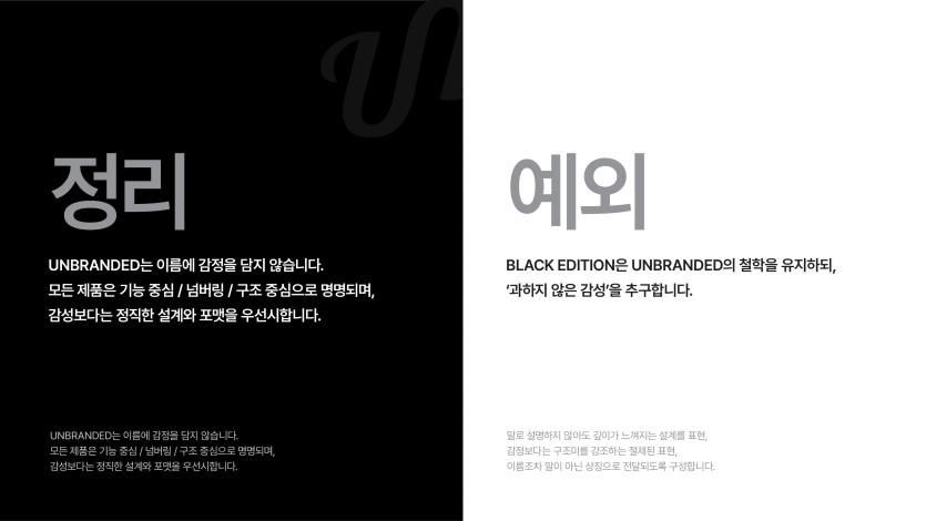 제품 분류 언브랜디드 컨셉기획안 PPT 작성자 정보 최고관리자 작성 작성일 2025.08.08 18:58 컨텐츠 정보 26 조회 목록 본문 <p>,</p> 태그 #고급스러운, #신비적인, #심플한, #안정적, #신뢰적인, #클래식한, #모던한, #깔끔한, #검정, #검정색, #검은, #검은색, #ppt, #프레젠테이션, #기획서, #브랜딩, #브랜드, #매트리스, #침구, #침실, #침대, #침구류, #남성적인, #흑백, #미니멀, #가이드, #스타일가이드, #디자인가이드, #무드보드 관련자료 이전 한우 소곱창 파우치 패키지 작성일 2025.08.14 18:19 다음 영도할매 참기름 라벨 작성일 2025.08.01 18:05 댓글 0 등록된 댓글이 없습니다. 로그인한 회원만 댓글 등록이 가능합니다. 목록